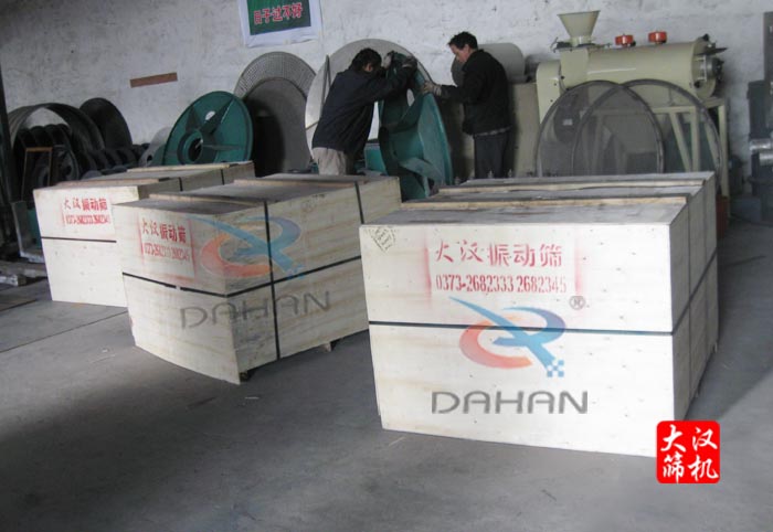 DH-1000型一層振動篩(3臺)木箱包裝,發(fā)貨現(xiàn)場實物圖