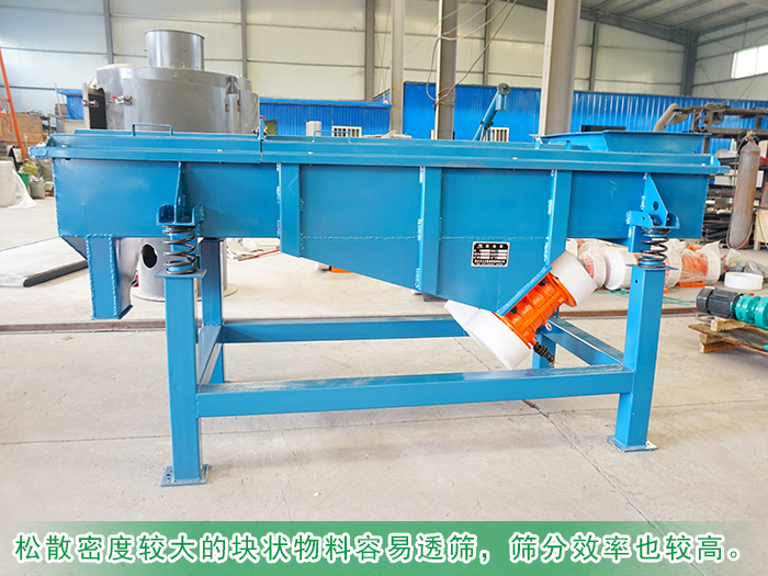相同物料的情況下其松散密度較大的塊狀物料容易透篩,篩分效率也較高。所以一定要保證物料的松散密度的大小,才能夠在一定程度下保證直線篩的篩分效率。