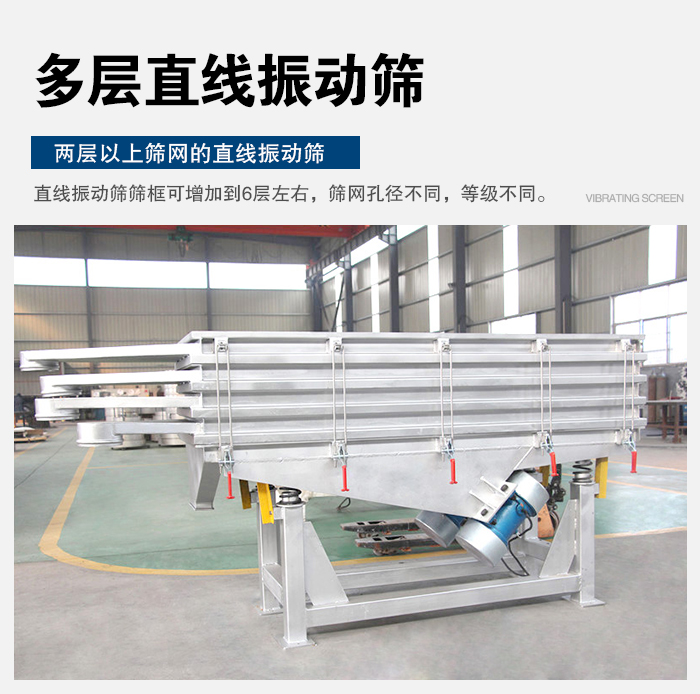 多層振動(dòng)篩可對(duì)粉狀、顆粒狀物料的篩選和分級(jí),廣泛用在塑料、磨料、化工、醫(yī)藥、建材、糧食、炭素、化肥等行業(yè).