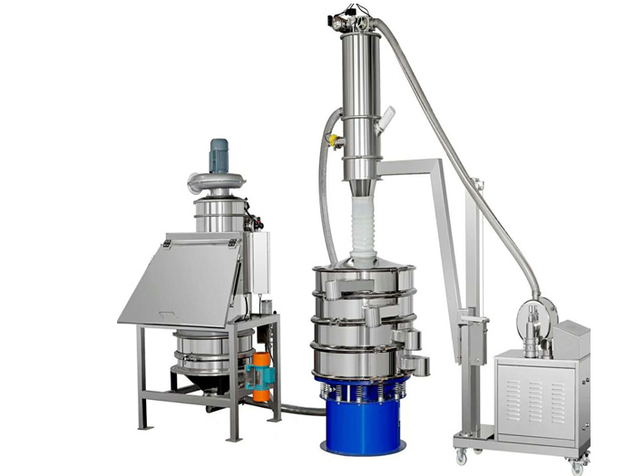 物料的投放、拆包、篩分和卸料,適用于粉料人工投料和篩分,拆包時由于集塵風(fēng)機(jī)的作用,可以避免物料粉塵到處飛揚。