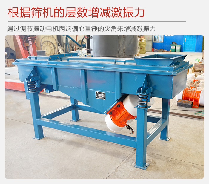 5、用戶可根據篩機的層數,物料比重不同來增減篩機的激振力(通過調節(jié)振動電機兩端偏心重錘的夾角來增減激振力),使篩機達到最佳的篩分效果。